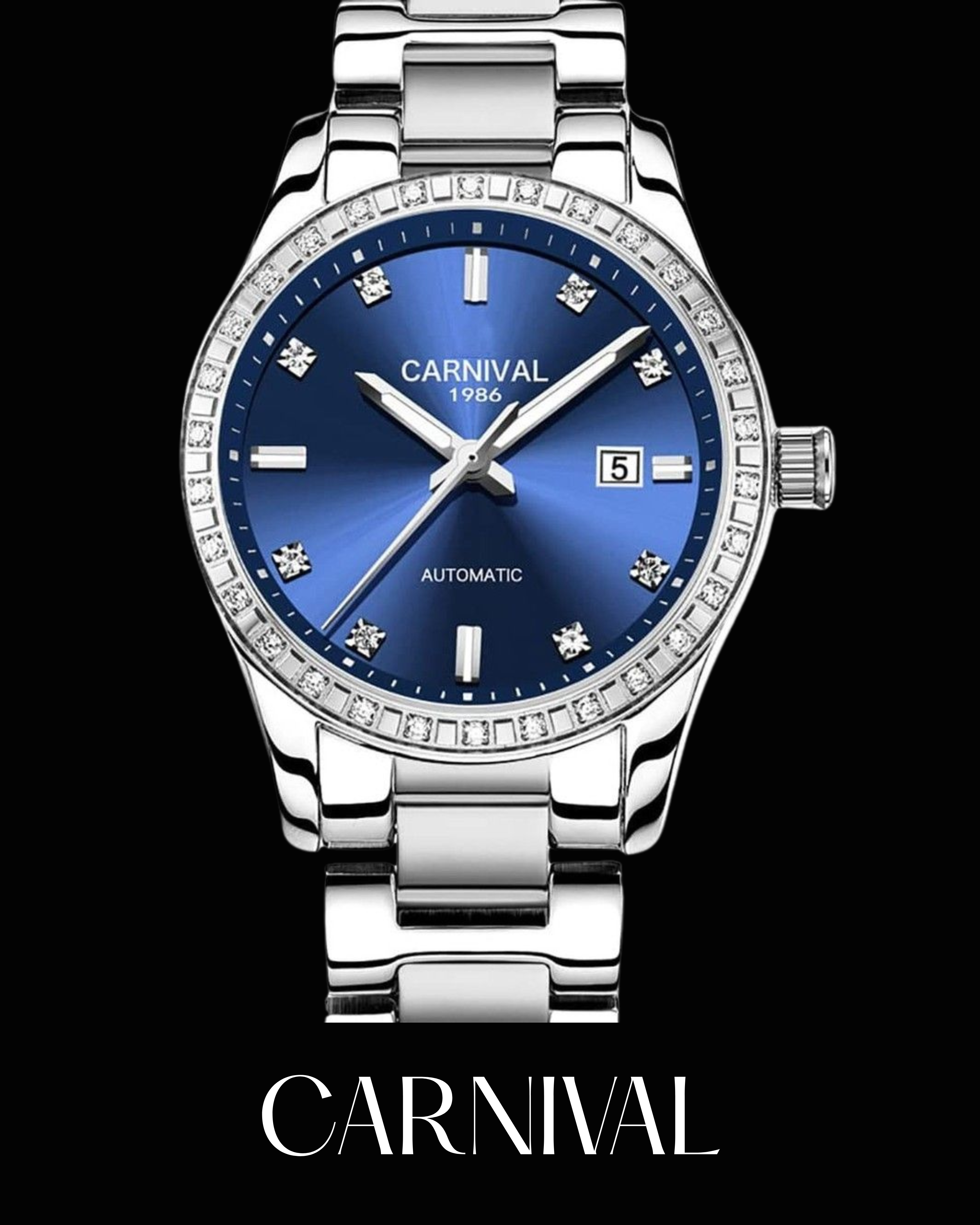 Đồng hồ Nam Carnival 8158G-VT-XD Màu Xanh Ice Blue - Dây Kim Loại: Mặt Số Dial Chuẩn Patek Đầy Nam Tính