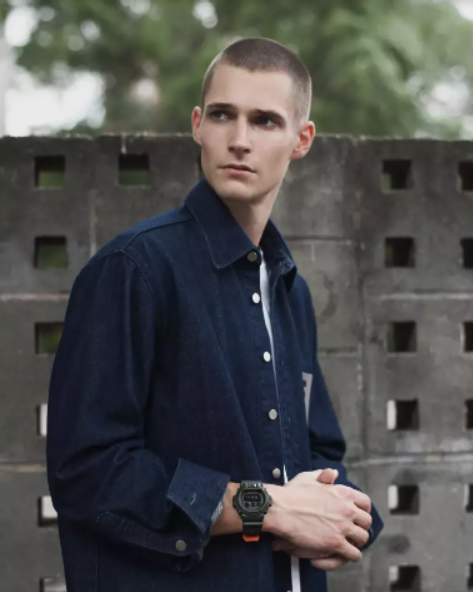 Phối đồ đồng hồ nam theo Style thư sinh đơn giản với áo sơ mi denim và một chiếc đồng hồ G-Shock điện tử đơn giản!