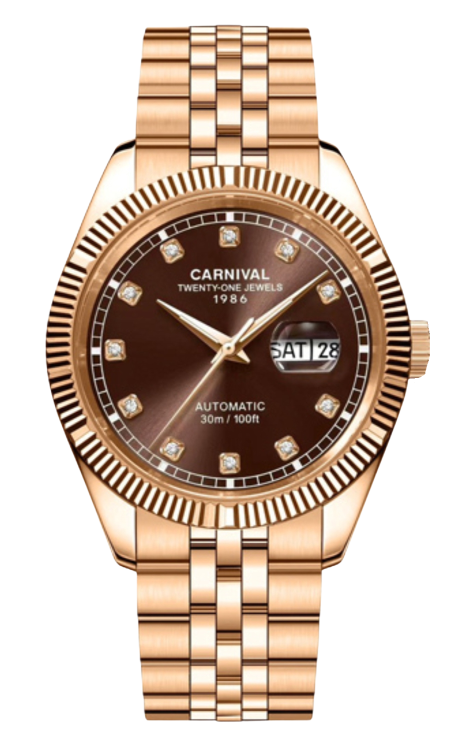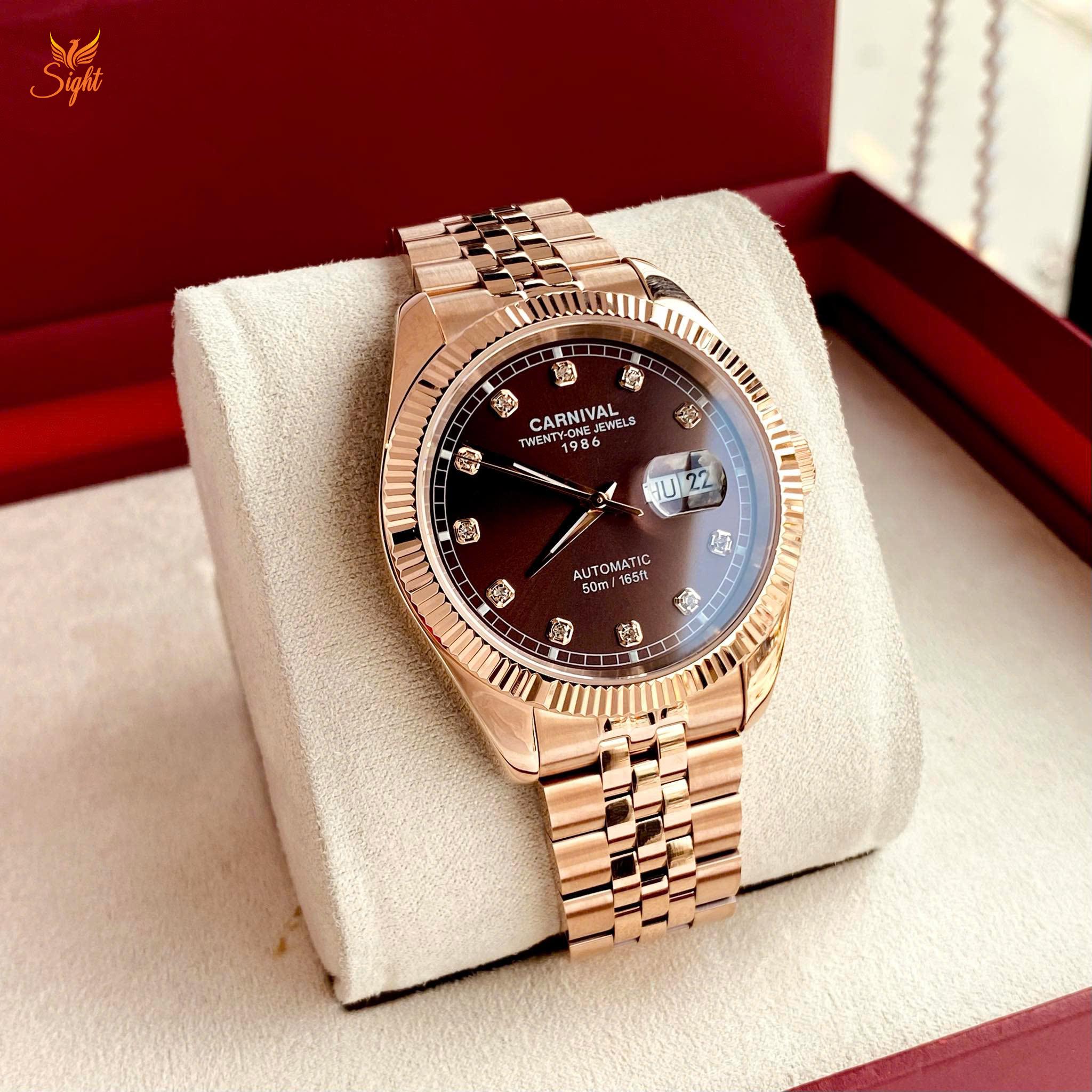 Đồng Hồ Nam Carnival 8131G-VH-N Mặt Số Nâu Choco - Dây Kim Loại: Thiết Kế Tựa ROLEX Demi Cho Quý Ông Lịch Lãm