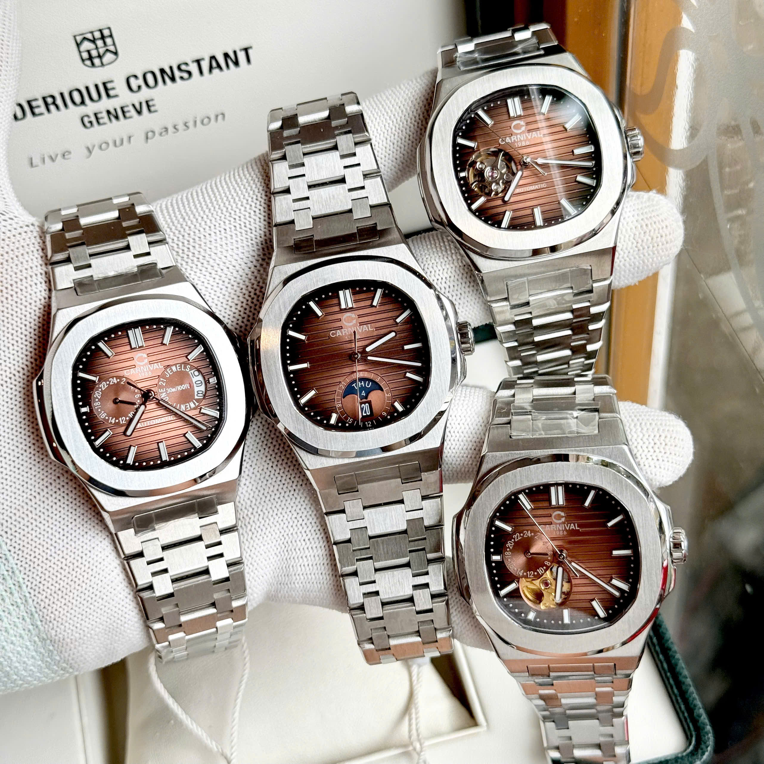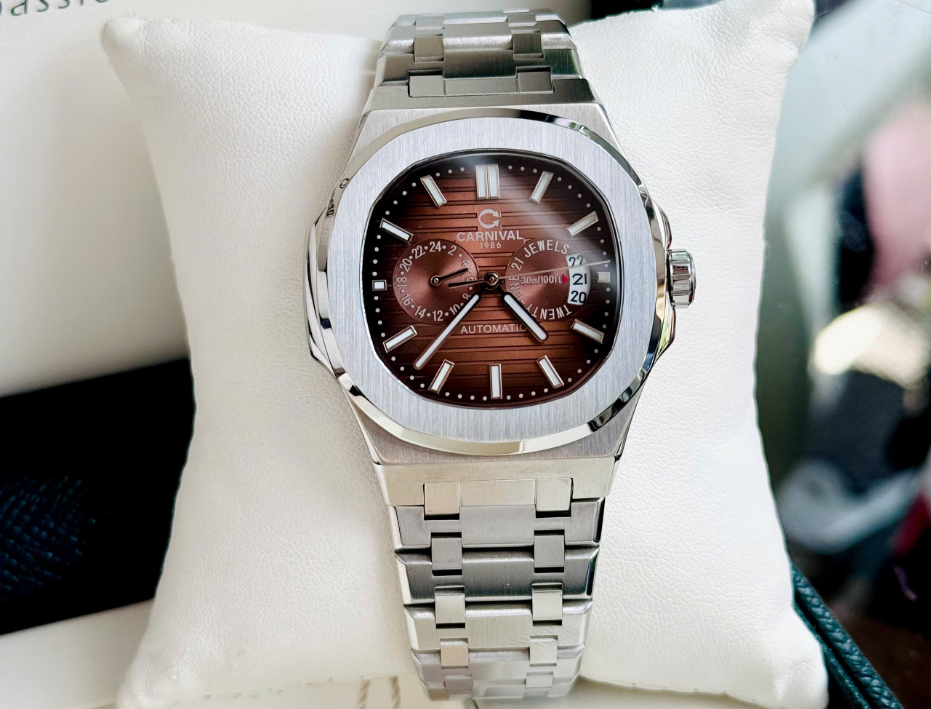 Đồng hồ Nam Carnival 8158G-VT-N Màu Nâu Choco - Dây Kim Loại: Mặt Số Dial Chuẩn Patek Đầy Nam Tính