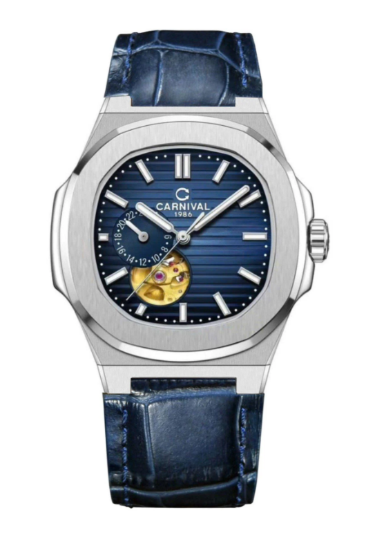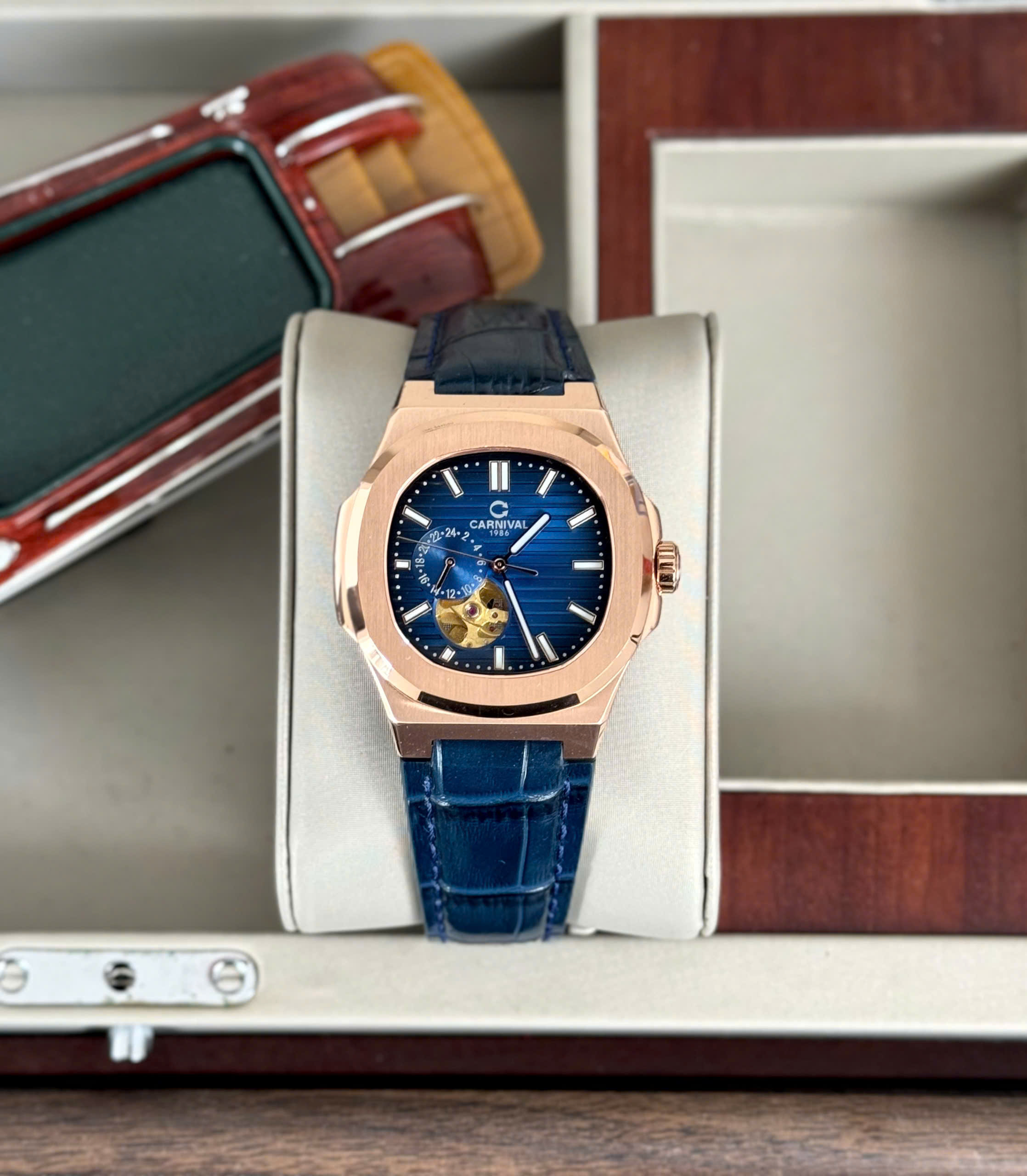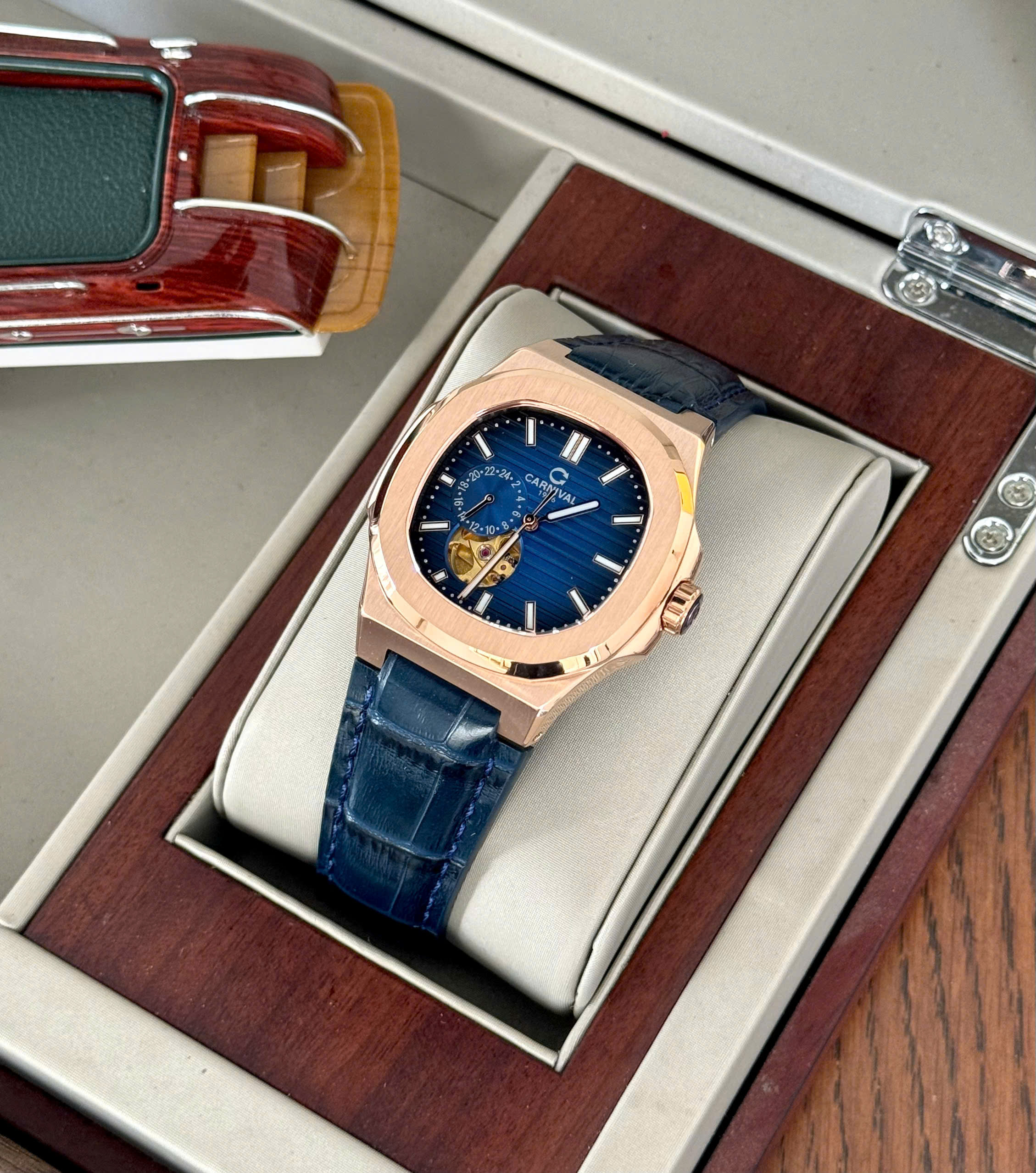 Đồng hồ Nam Carnival 8159G Rose Màu Xanh Dương - Dây Da: Mặt Số Hình Vuông & Chi Tiết Lộ Cơ Độc Nhất