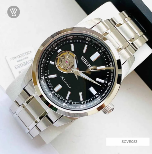 Đồng Hồ Nam Seiko 5 SCVE053 Open Heart - Mặt số Đen - Dây Kim Loại: Chi Tiết Lộ Cơ Toát Lên Chất Lịch Lãm Từ Cổ Tay Quý Ông